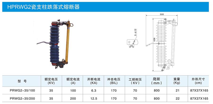 HPRWG2瓷支柱跌落式熔斷器